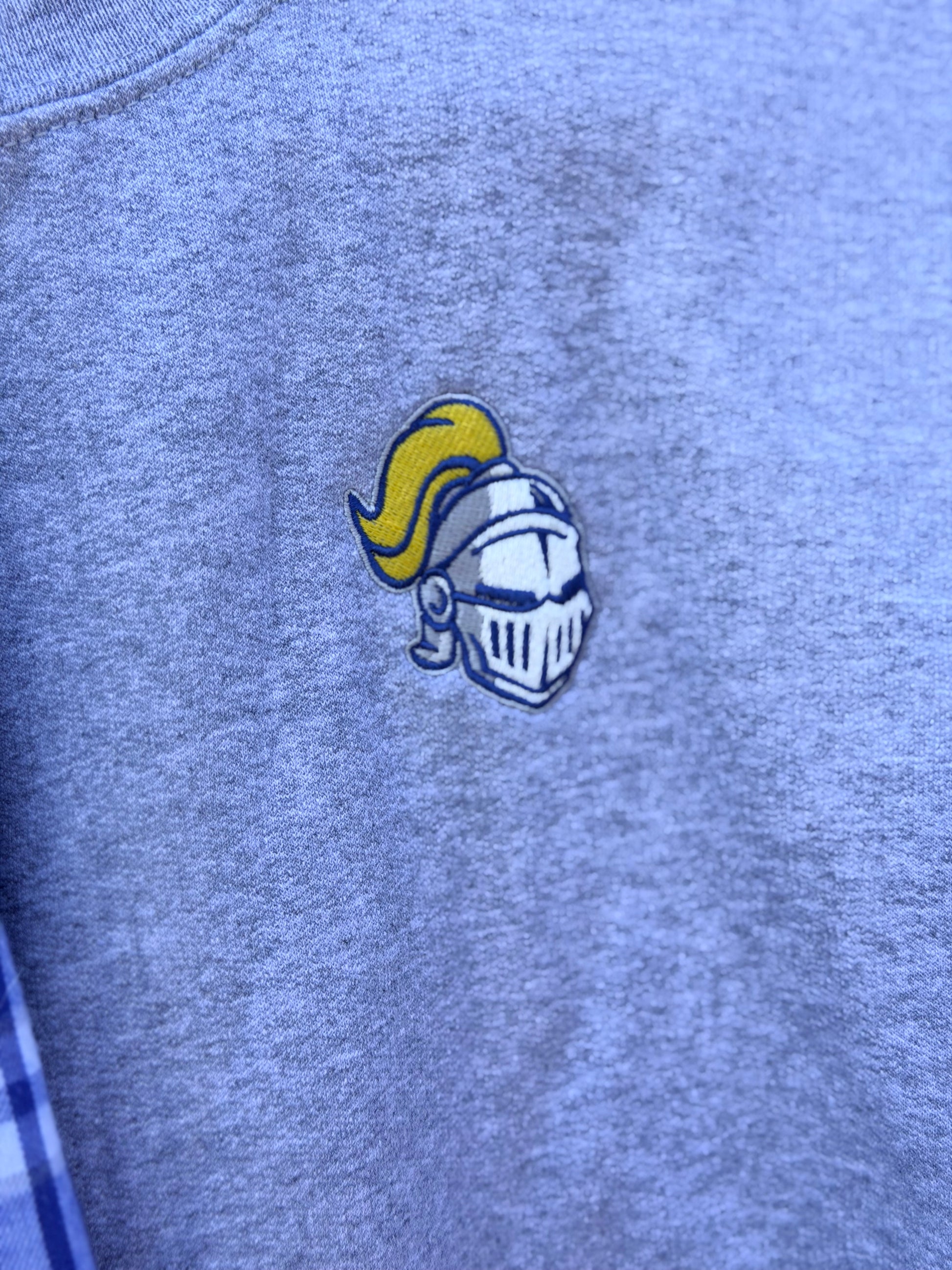 This unisex style crewneck comes in sport gray and comes in both youth and adult sizing. It features the embroidered Knights logo on the front left or you can use the Royals logo.