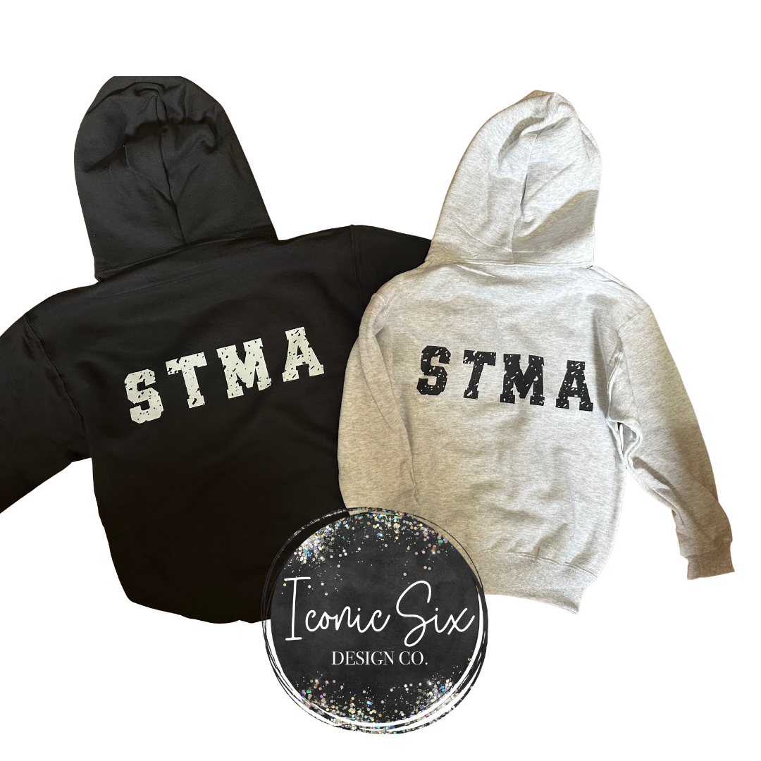 This unisex style hoodie comes in youth sizing and adult sizing It comes in either black or ash gray and features this "K" Knights design on the front. The back features Knights in a distressed lettering.